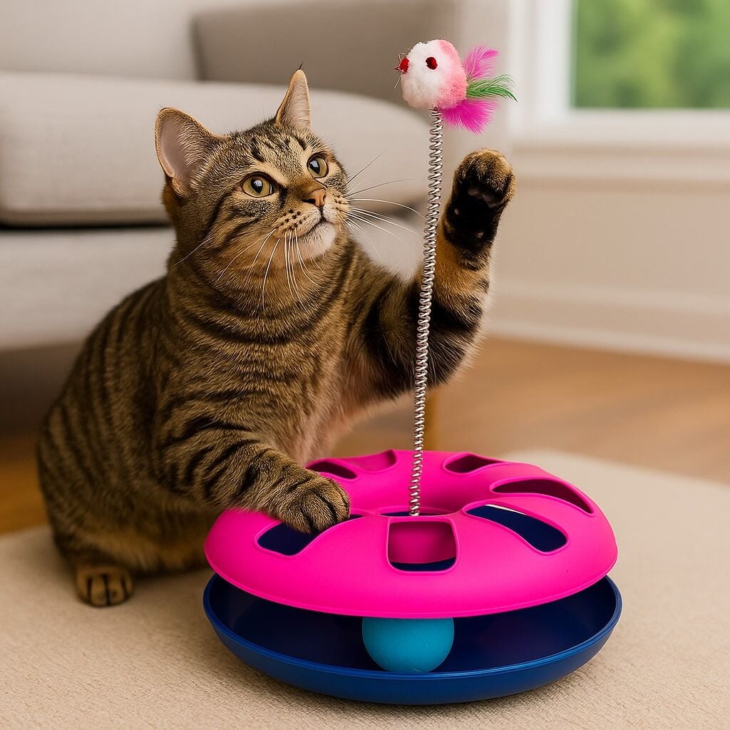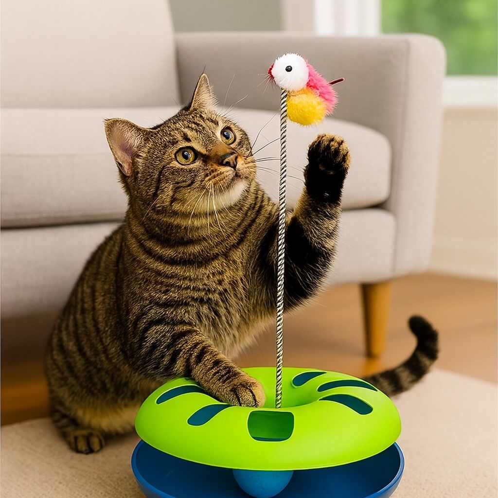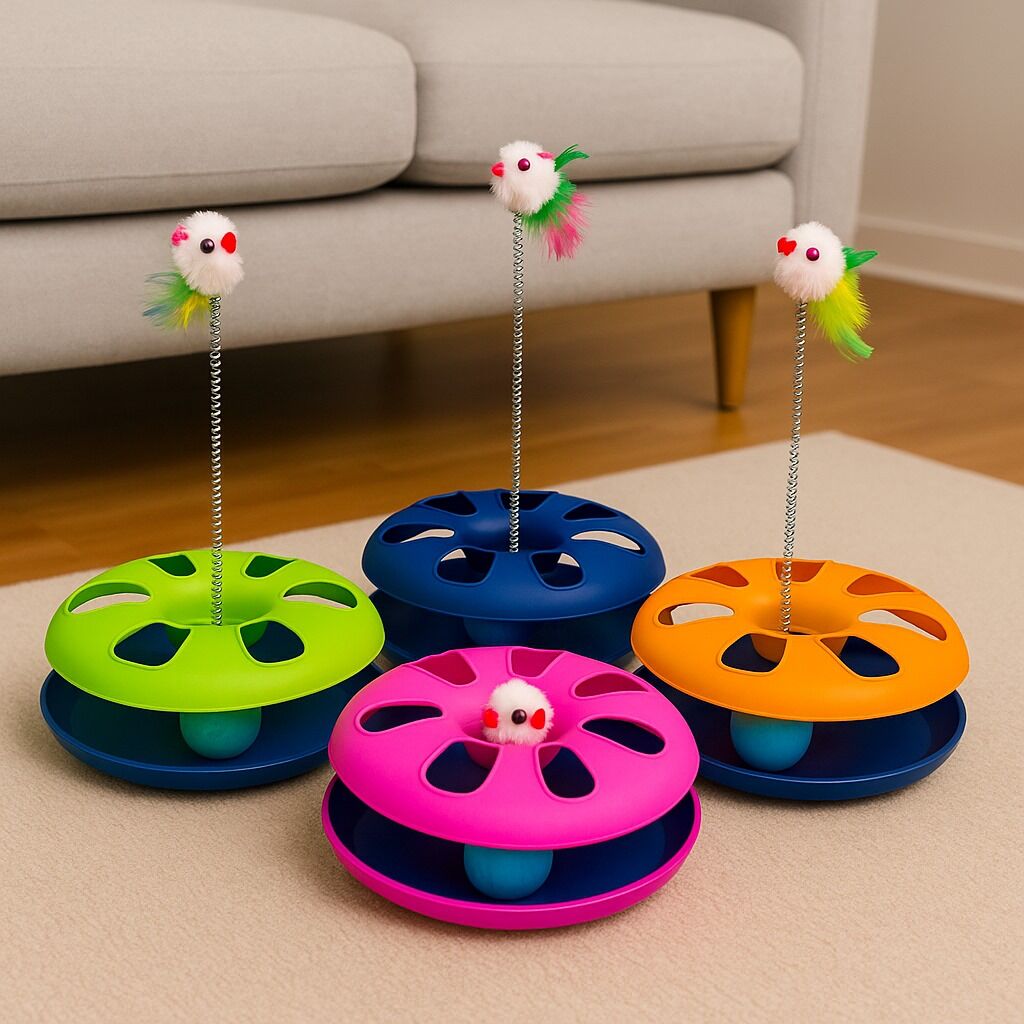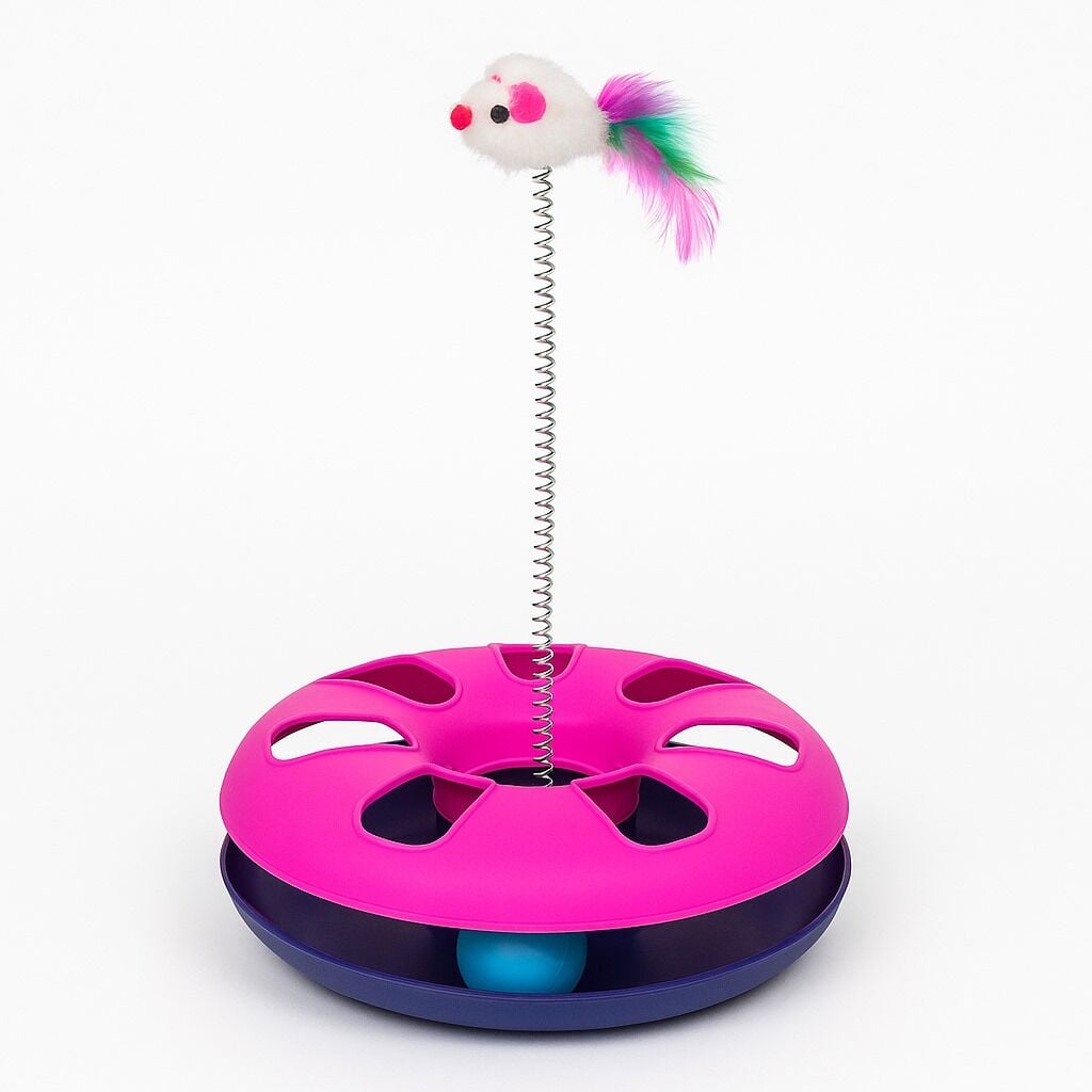 Fare figürü veya fare temalı parçalar içeren toplu çember oyuncaklar, çember şeklindeki yapıda yer alan top veya fareyi kedi patileriyle iterek döndürme, yakalama ve kovalama gibi aktif oyun davranışlarını teşvik eder. Bunun sonucunda kediniz enerji harcar, zihinsel uyarım alır ve sıkılmadan oyun oynar.
