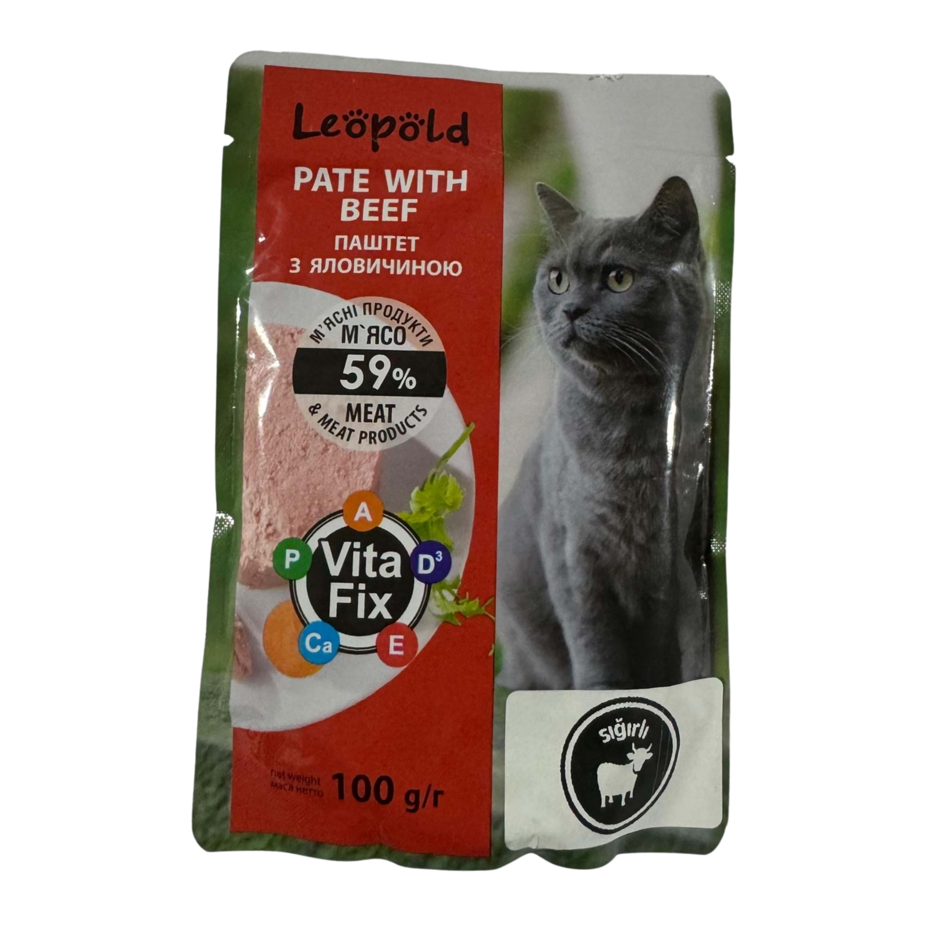 Leöpöld Kedi Sığır Eti Ezme Pouch 100 g ( 24 Adet)