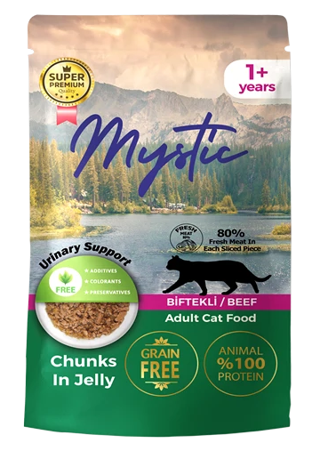 MYSTIC Yetişkin (Adult) Biftekli Sığır Etli (Beef) Kedi Pouch Jöle İçinde 85 GR (24’lü Paket)