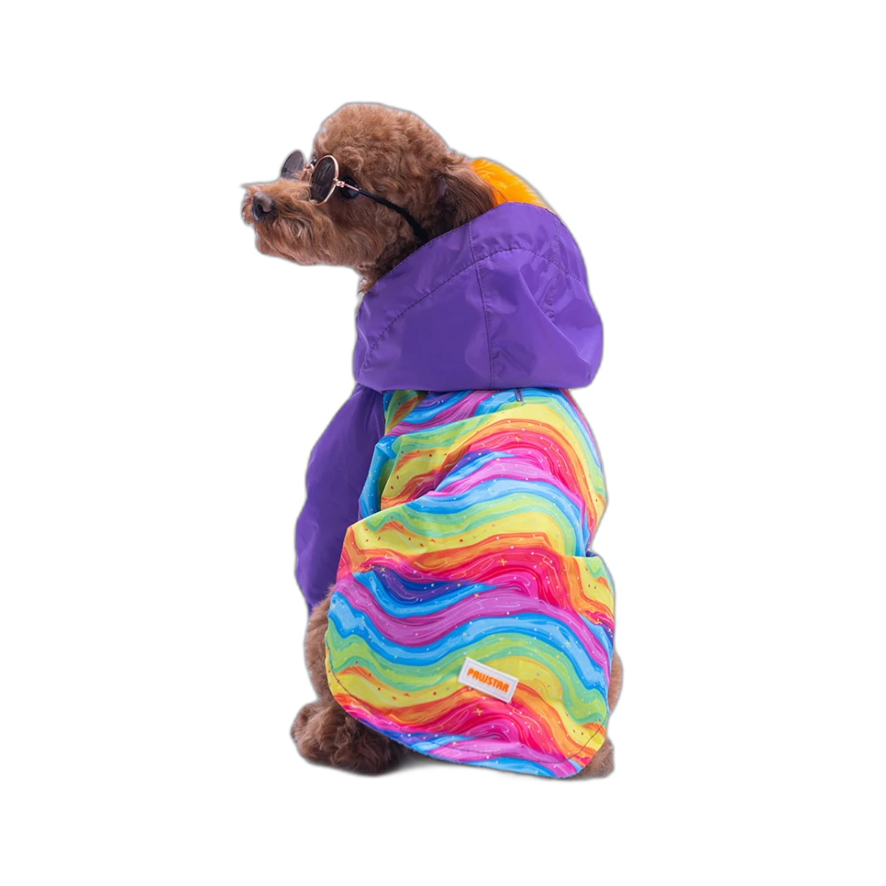 Pawstar Rio Rainbow Yağmurluk, yağışlı ve soğuk havalarda köpeğinizi korumak için tasarlanmış, polar astarlı su geçirmez bir dış giyim ürünüdür. Dış yüzeyindeki membran kaplama yağmur ve neme karşı yüksek direnç sağlarken, iç polar astar köpeğinizi sıcak ve konforlu tutar. Canlı dijital rainbow desenleriyle hem şık hem dikkat çekici bir görünüm sunar. Tasma kullanımı için ilik detayı bulunur ve rahat kesimi sayesinde köpeğinizin hareketlerini kısıtlamaz.