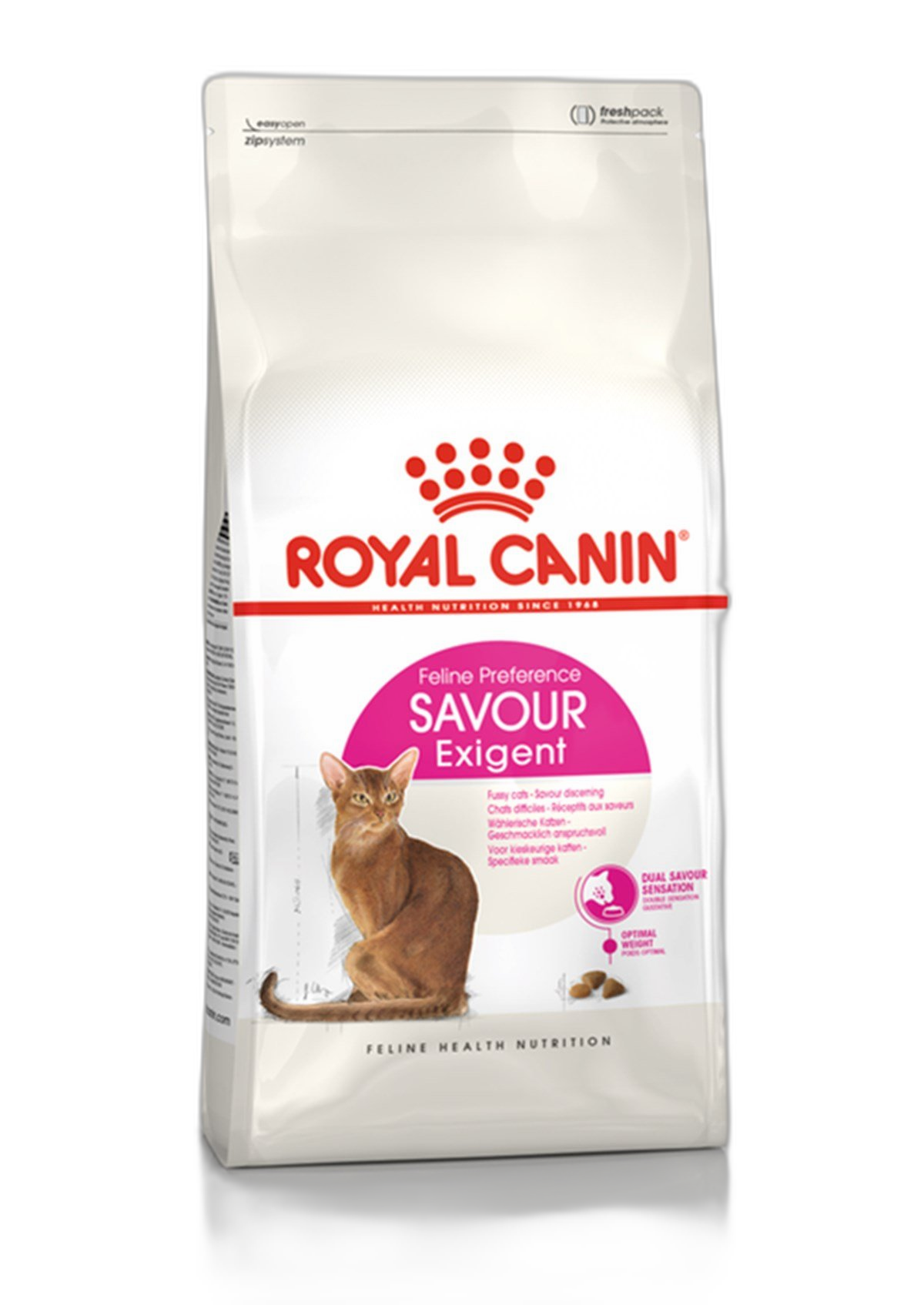 Royal Canin Savour Exigent, seçici iştaha sahip yetişkin kedilerin beslenme tercihleri göz önünde bulundurularak özel olarak formüle edilmiştir. İki farklı kroket yapısı ve aromatik profili sayesinde zor beğenen kedilerde iştahın artmasına yardımcı olur.