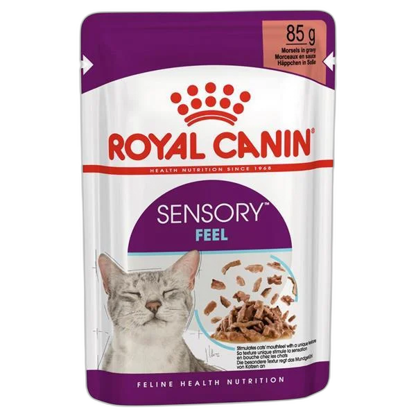 Royal Canin Sensory Feel, yetişkin kedilerin ağız içindeki doku hissini uyarmak için özel olarak geliştirilmiş tam ve dengeli bir yaş mama formülüdür. Özellikle seçici kediler için tasarlanan özel parçacık yapısı ve soslu formu sayesinde yüksek lezzetlilik sunar.