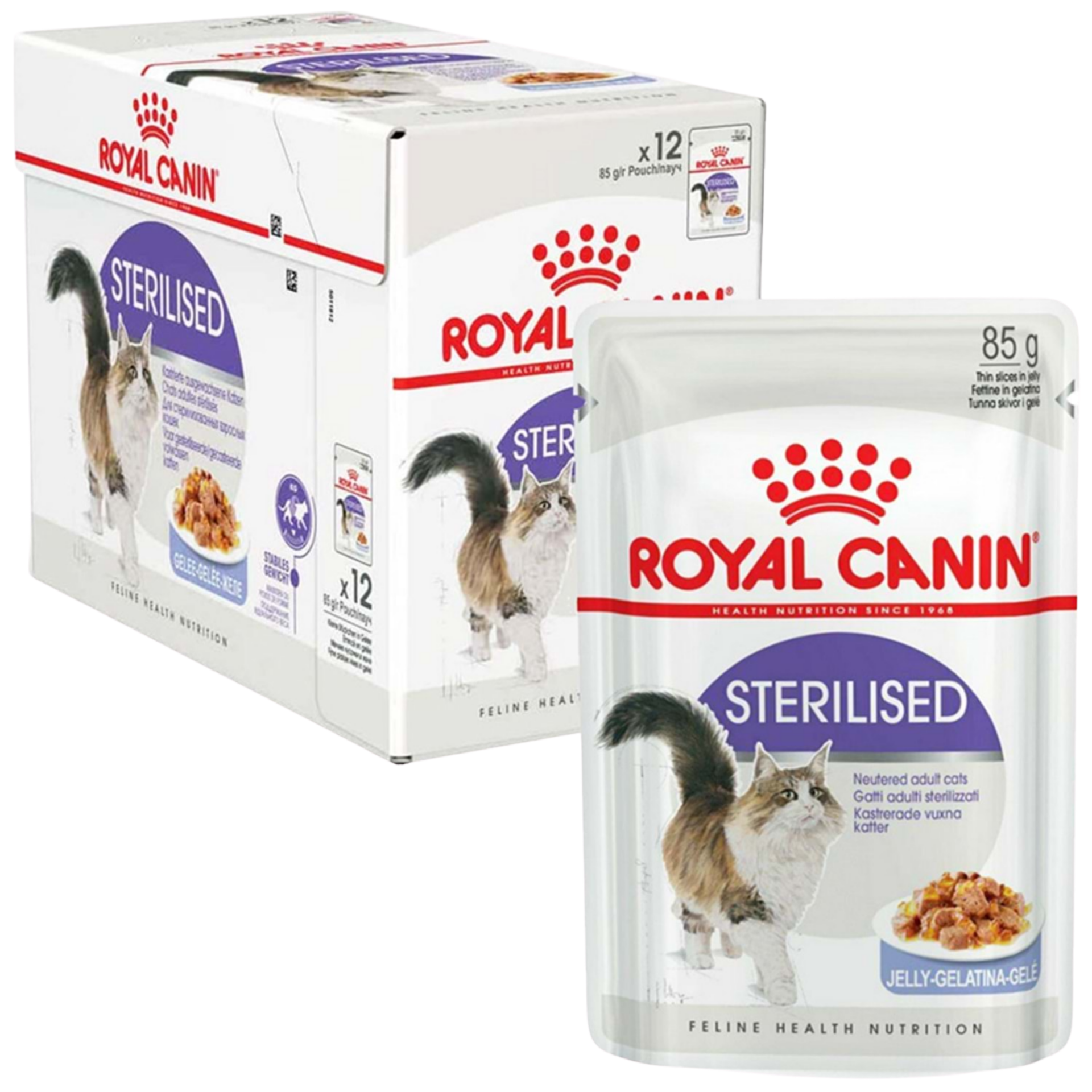 Royal Canin Sterilised Jelly, kısırlaştırılmış kediler için günlük tam öğün olarak ideal bir seçenektir. Dengeli besin içeriği, kilo kontrolü ve kas sağlığı desteği ile kedinizin sağlıklı ve mutlu kalmasına yardımcı olur.