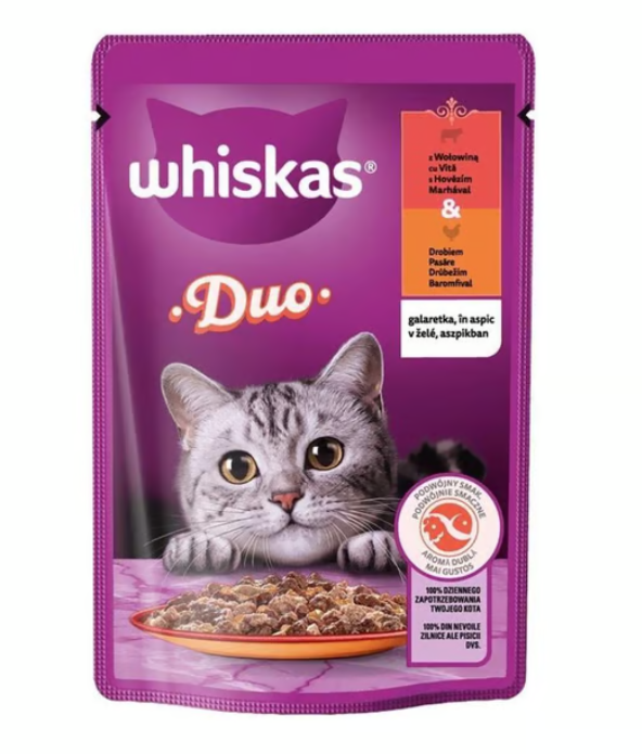 Kediniz için lezzetli, dengeli ve pratik bir yaş mama arıyorsanız, Whiskas Duo Sığırlı & Kümes Hayvanlı Pouch 85 g 28’li paket ideal bir tercihtir.