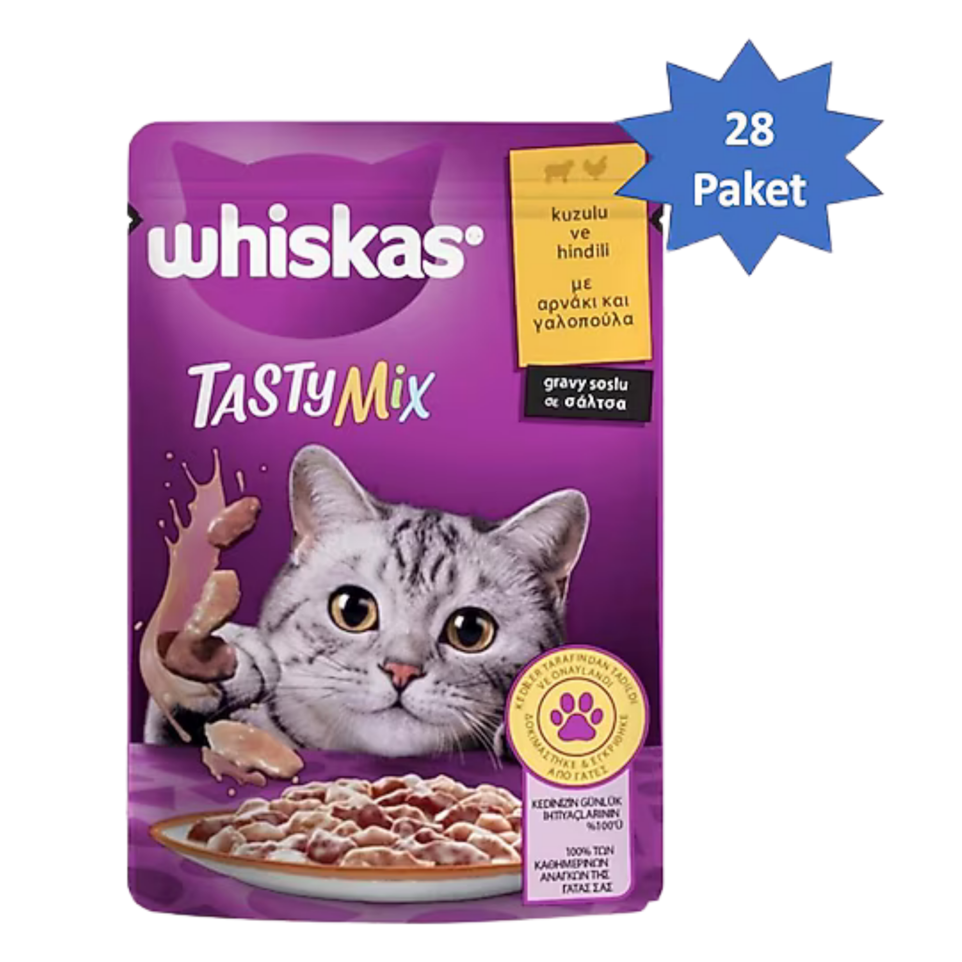 Kediniz için lezzetli, dengeli ve pratik bir yaş mama arıyorsanız, Whiskas Tasty Mix Kuzu & Hindi Pouch 85 g 28’li paket ideal bir tercihtir.